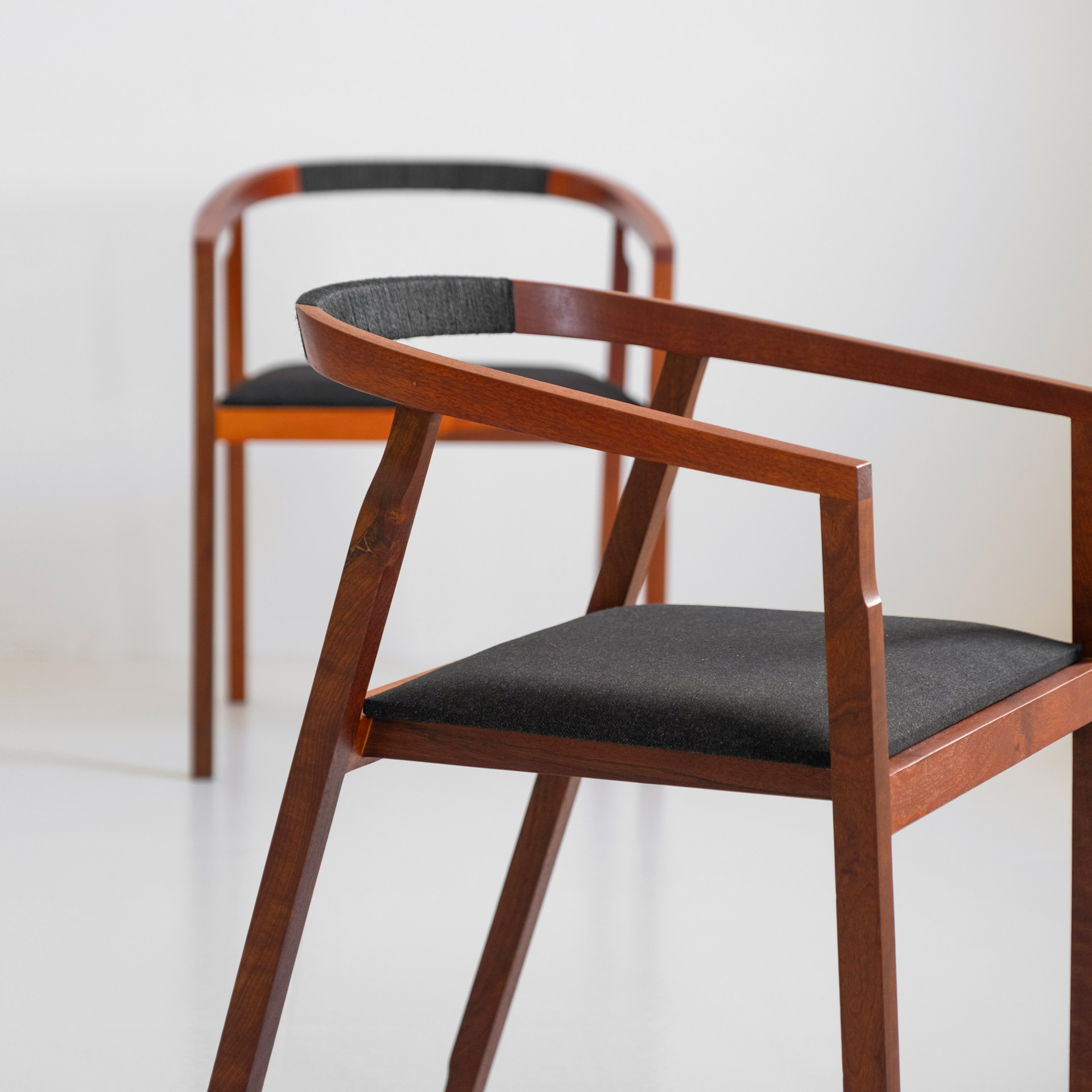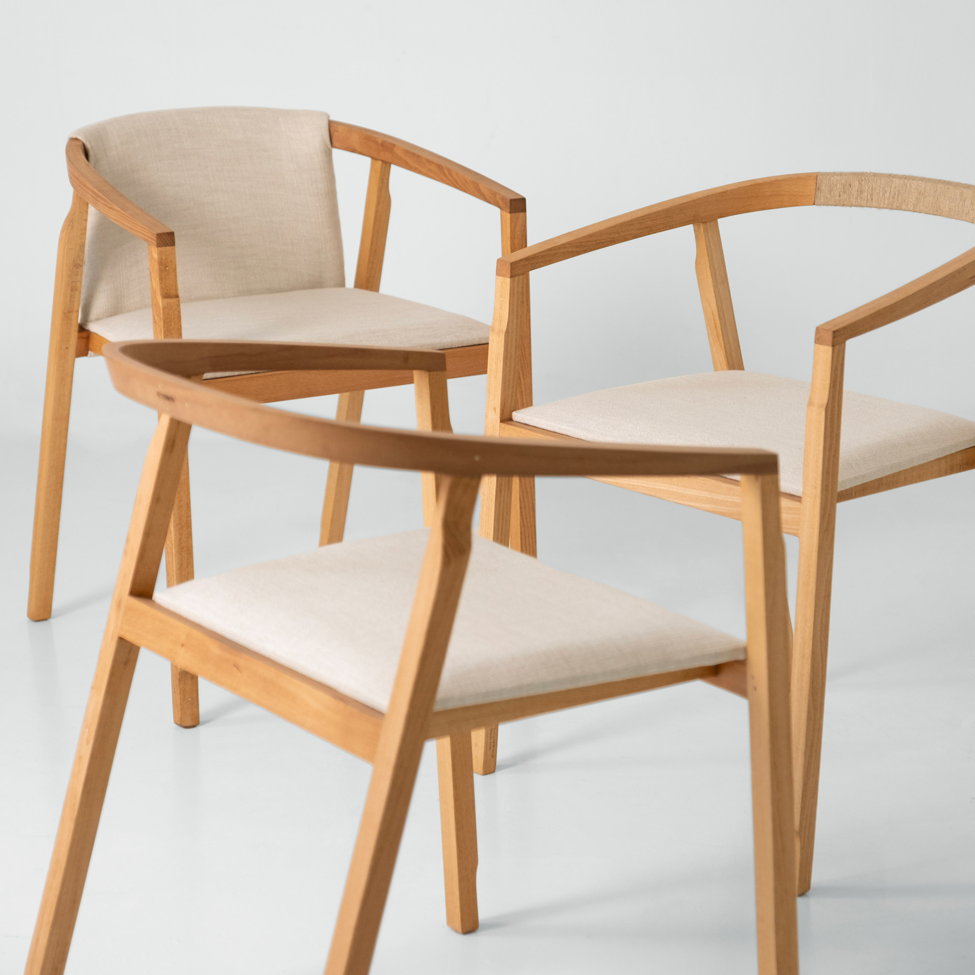 Inspired by the katana sword, this version features very delicate handwoven fabric on its backrest, with a subtle interpretation of the wood veneer woven to a specific thickness. The handles of katana swords typically feature exquisite handwoven details, which is why this chair is named "Katana."