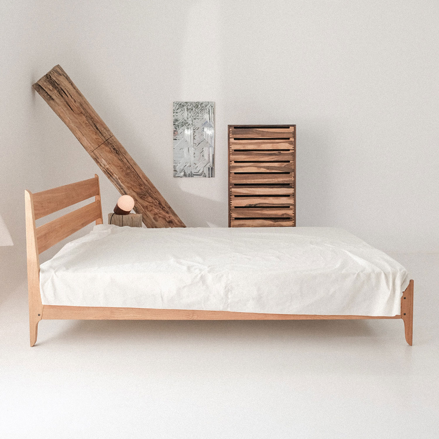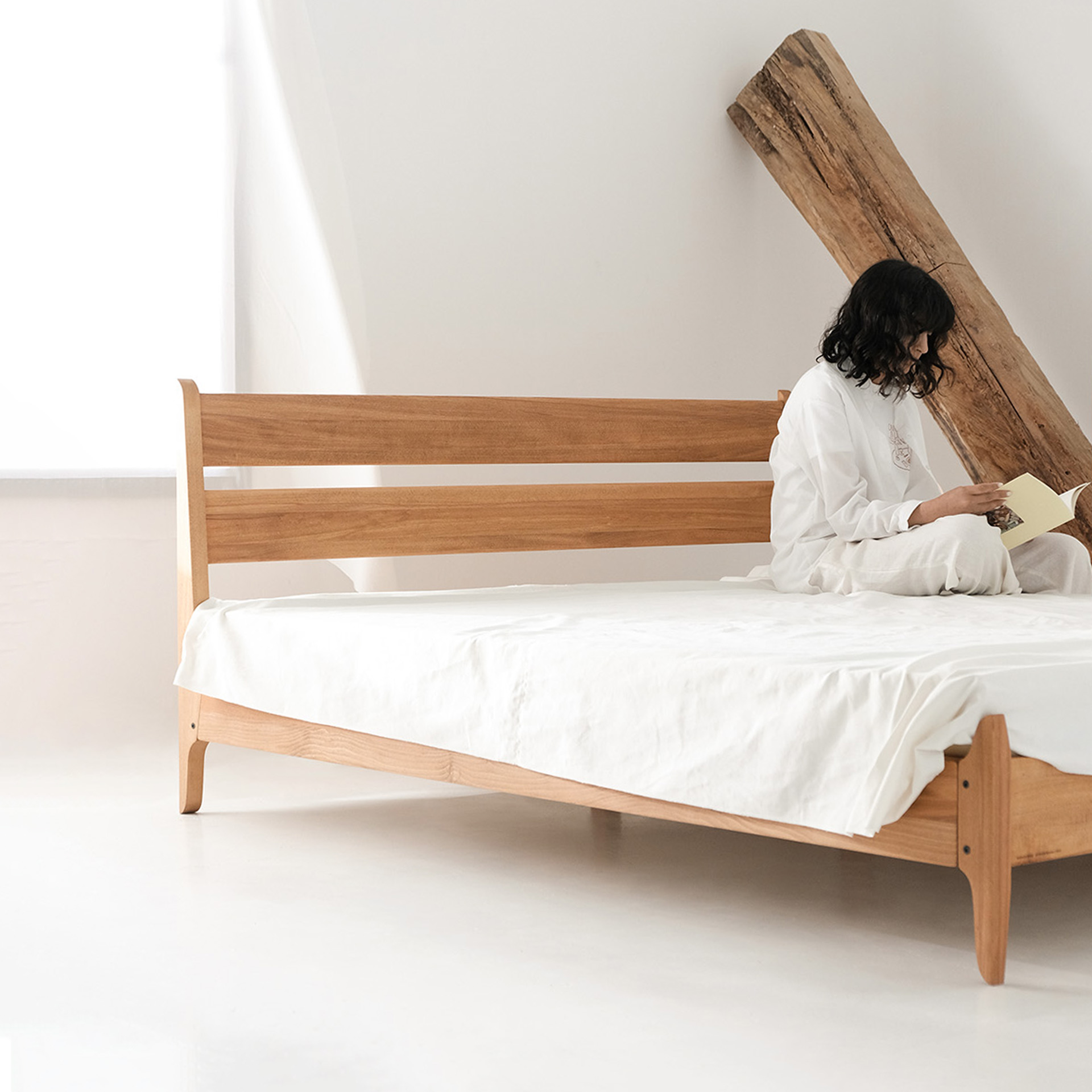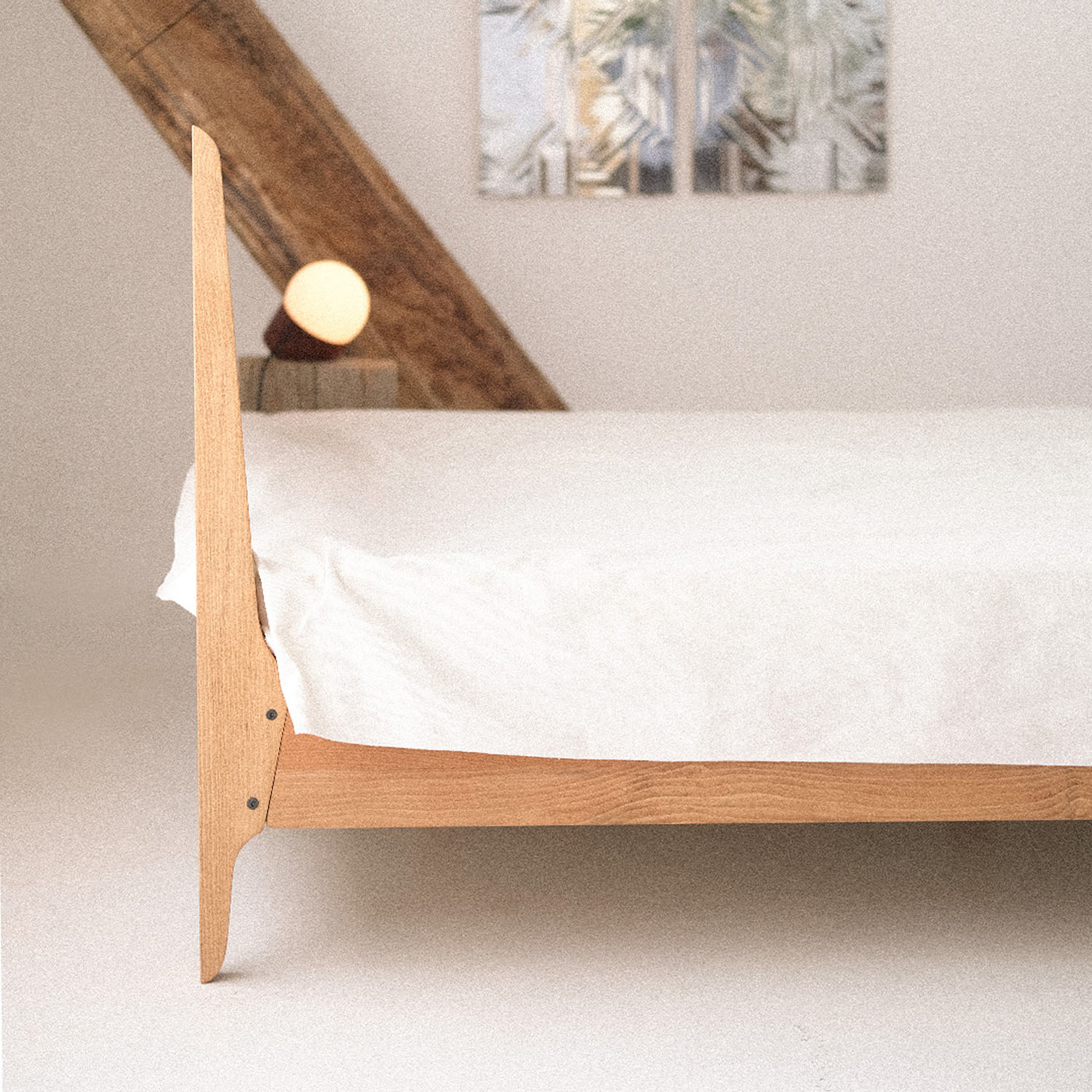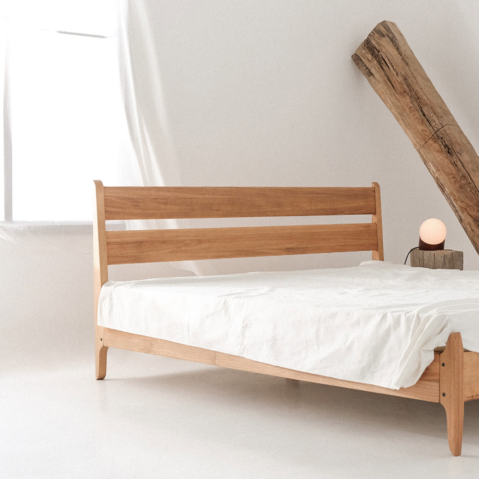 The "Ziit" bed brings a sense of calm to your space with its clean lines and simple form. Crafted from solid beech wood in a warm, natural tone, it combines durability with understated elegance. The horizontal slats of the headboard add balance and visual harmony. Ziit is a timeless choice for those who appreciate quiet, honest design.