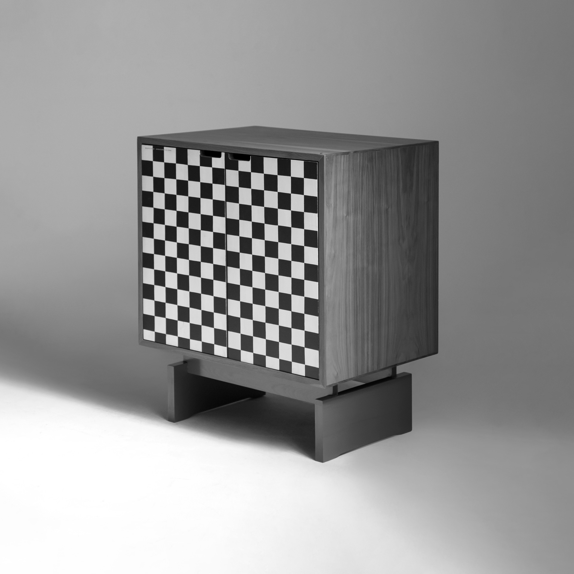 درب، کشو و پایه‌ها تماماً از چوب گردو ساخته شده‌اند؛ با بدنه‌ای از روکش گردو برای هماهنگی بیشتر.