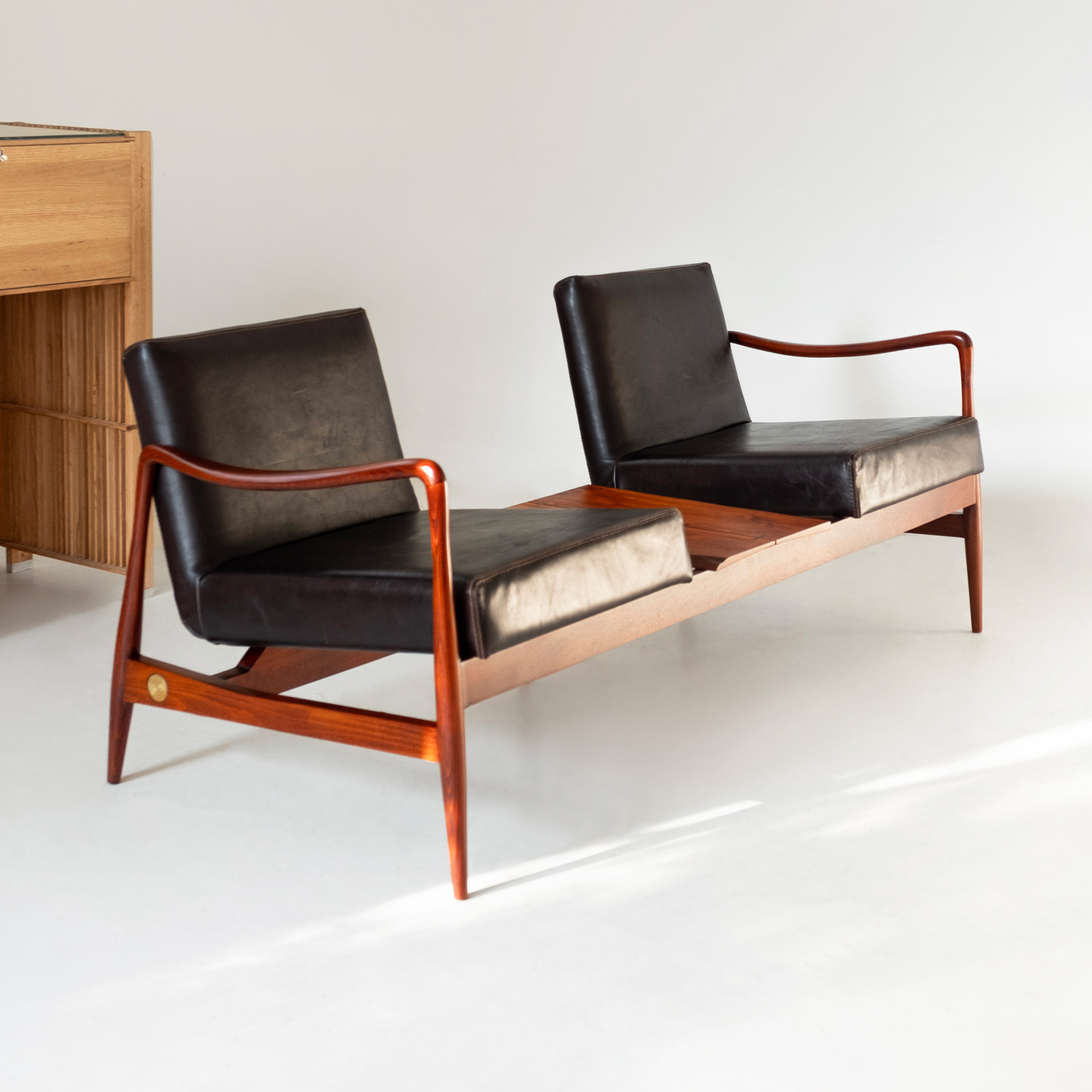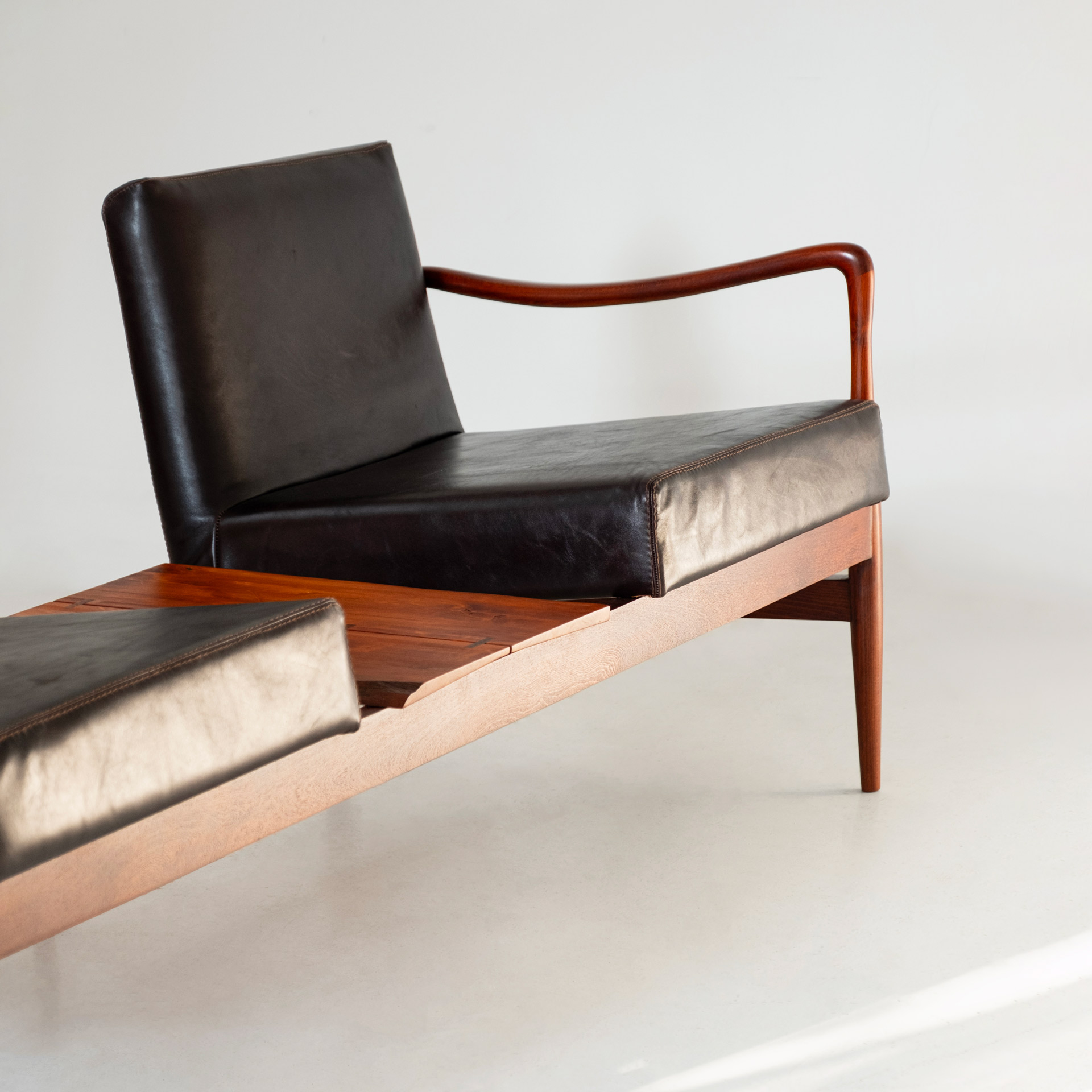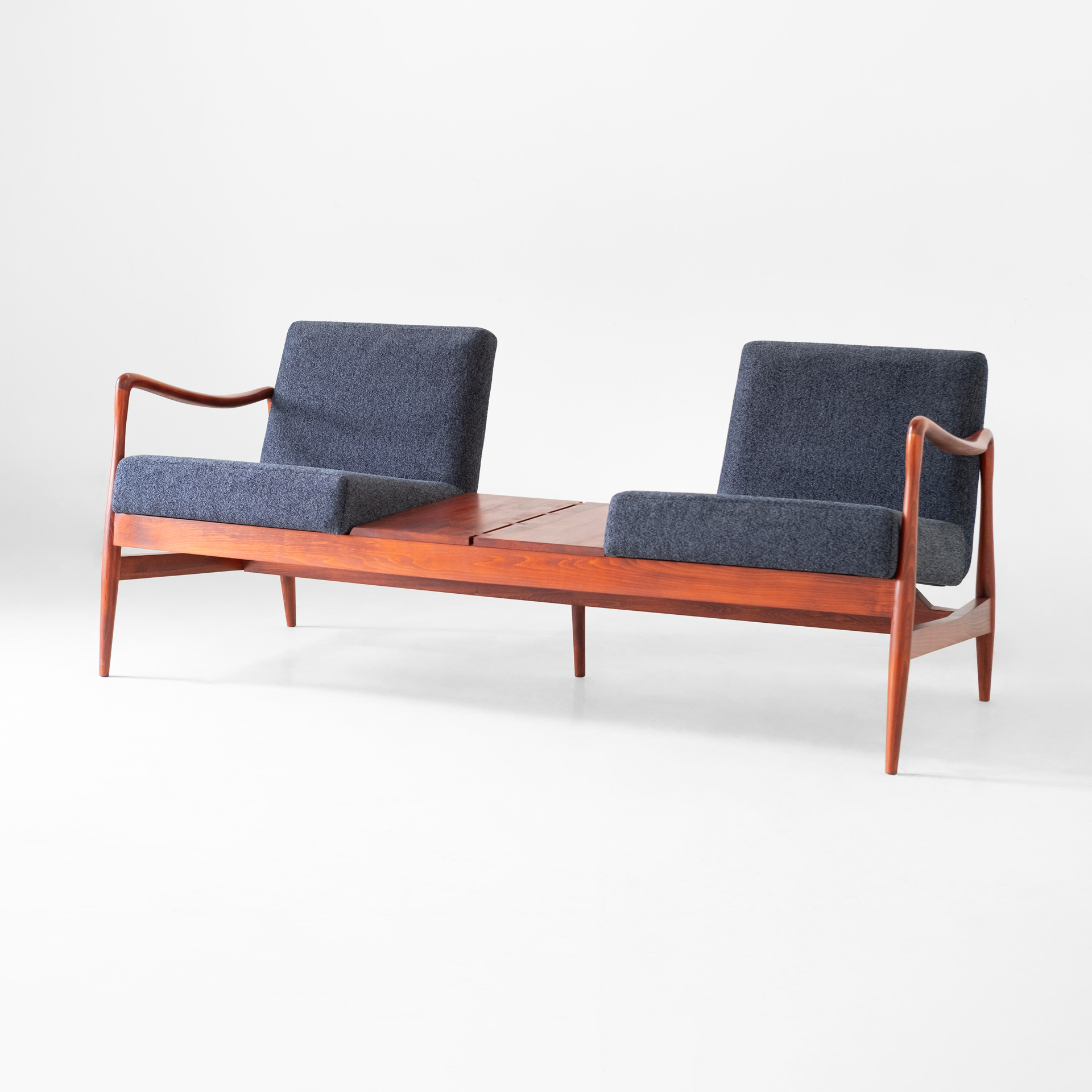 The three-seater version comes in two models: one as a traditional three-seater, and another as a two-seater combined with a central table.